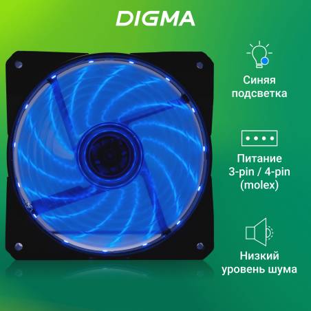 Вентилятор для корпуса Digma DFAN-LED-BLUE RGB 120х120x25 черный 3-pin 4-pin (Molex) 23дБ Ret