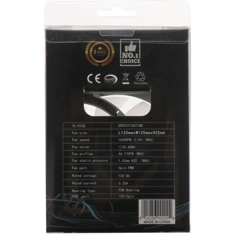 Вентилятор для корпуса Thermalright TL-C12S ARGB 120х120x25 черный 4-pin 25.6дБ Ret