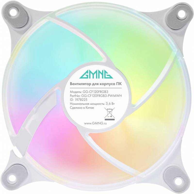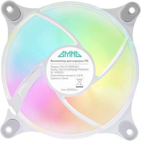 Вентилятор для корпуса GMNG GG-CF120FRGB3-PWMWH RGB 120х120x25 белый 4-pin 26дБ Ret