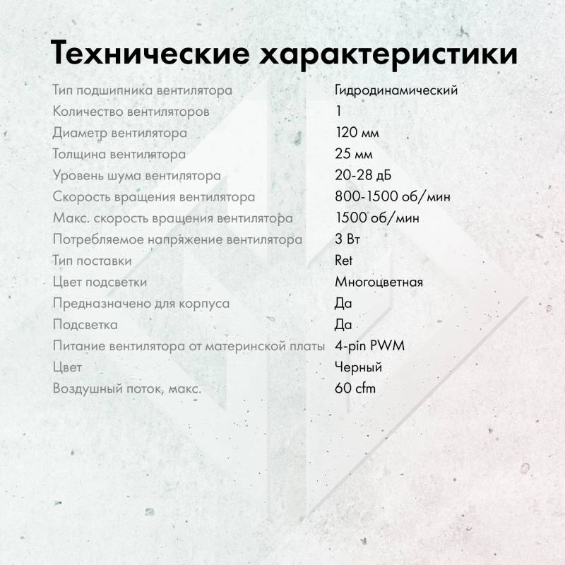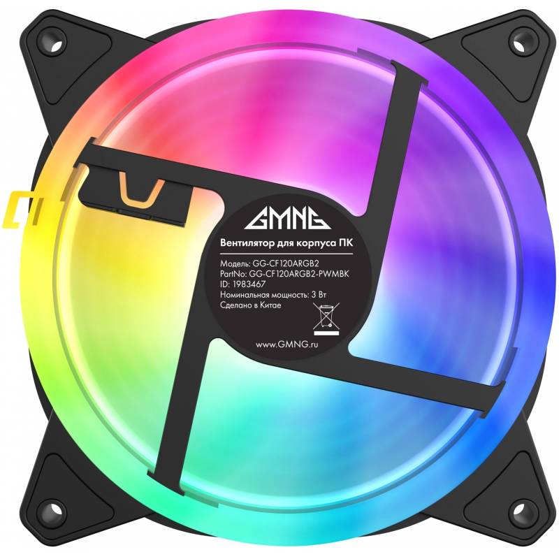 Вентилятор для корпуса GMNG GG-CF120ARGB2-PWMBK ARGB 120х120x25 черный 4-pin 26дБ Ret
