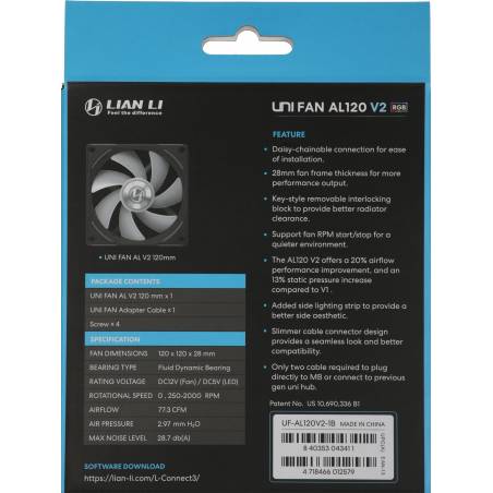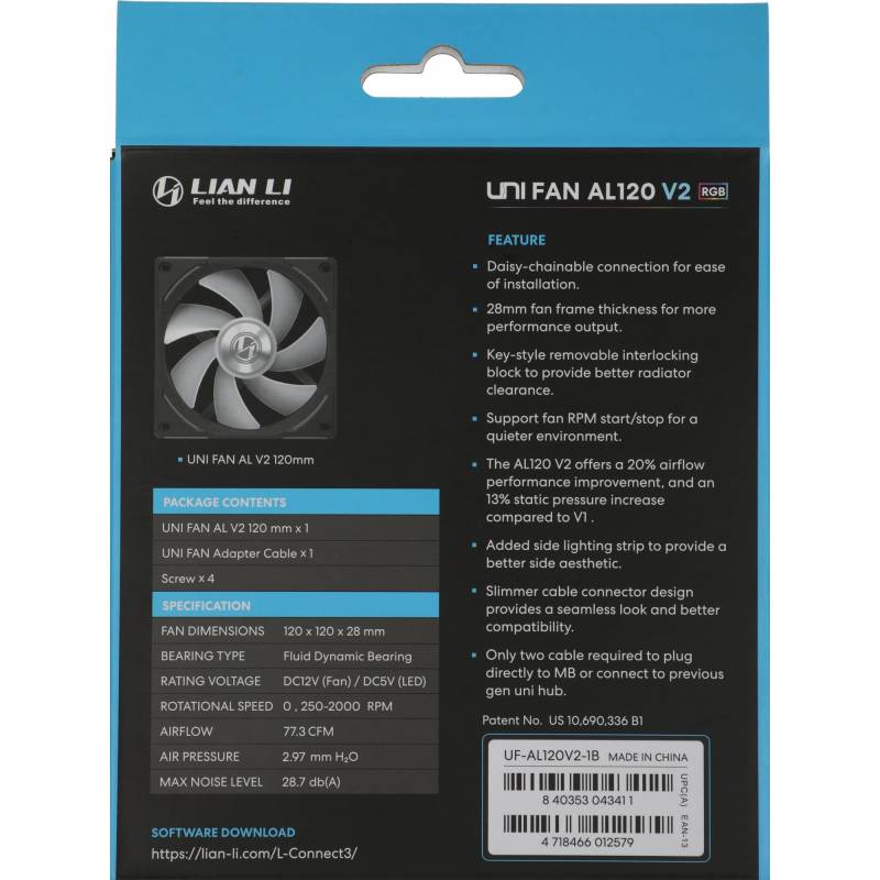 Вентилятор для корпуса Lian-Li Uni Fan ALV2 120 V2 ARGB 120х120x28 черный 4-pin 28.7дБ (G99.12ALV21B.00) Ret