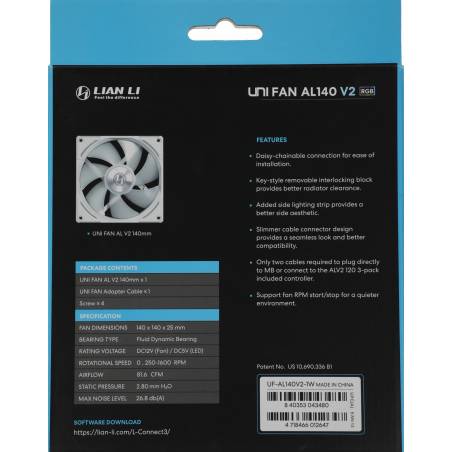 Вентилятор для корпуса Lian-Li Uni Fan ALV2 140 V2 ARGB 140х140x28 белый 4-pin 26.8дБ (G99.14ALV21W.00) Ret