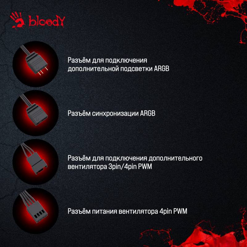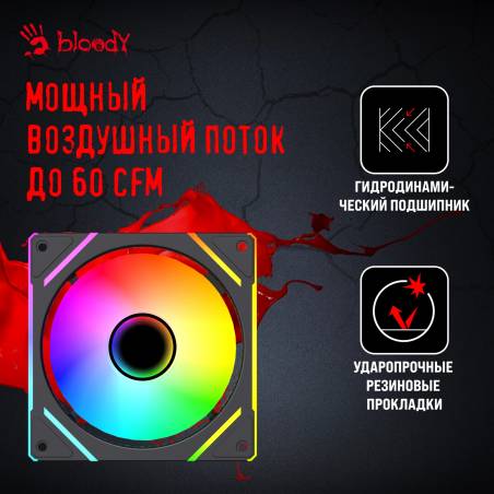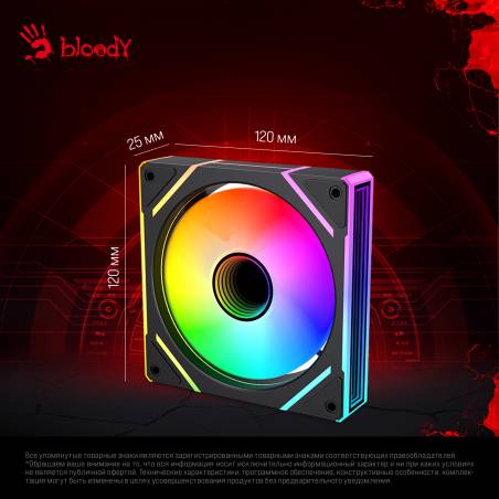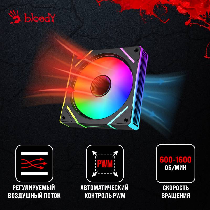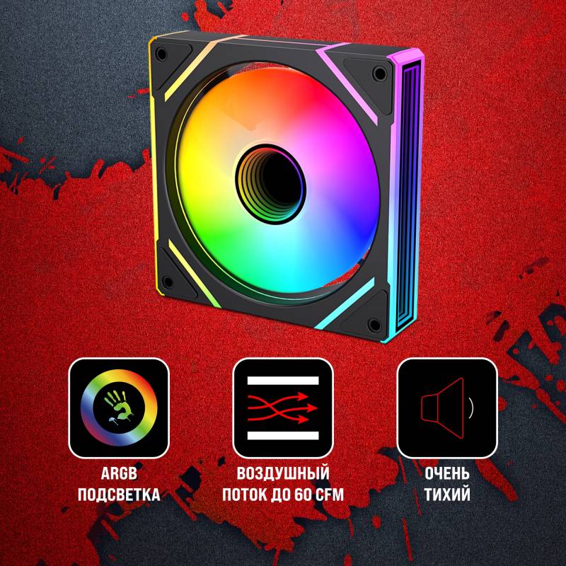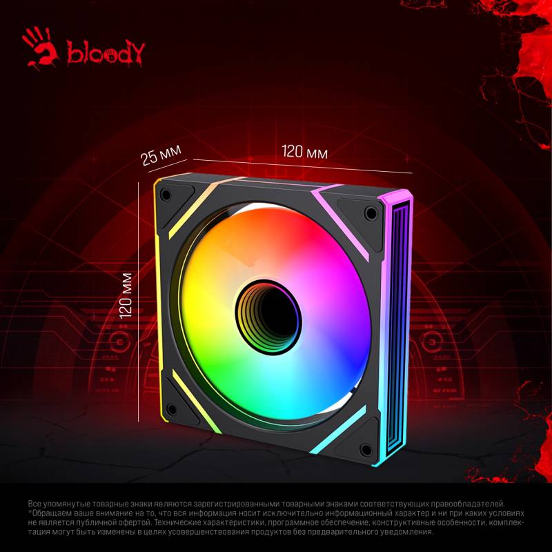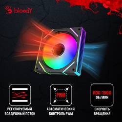 Вентилятор для корпуса Bloody BD-CF120ARGB2 LCD ARGB 120х120x25 черный 4-pin 26дБ (BD-CF120ARGB2-BK) Ret