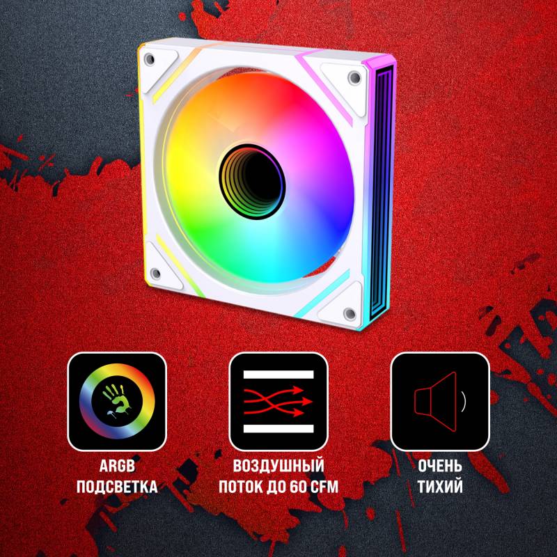 Вентилятор для корпуса Bloody BD-CF120ARGB2 LCD ARGB 120х120x25 белый 4-pin 26дБ (BD-CF120ARGB2-WH) Ret