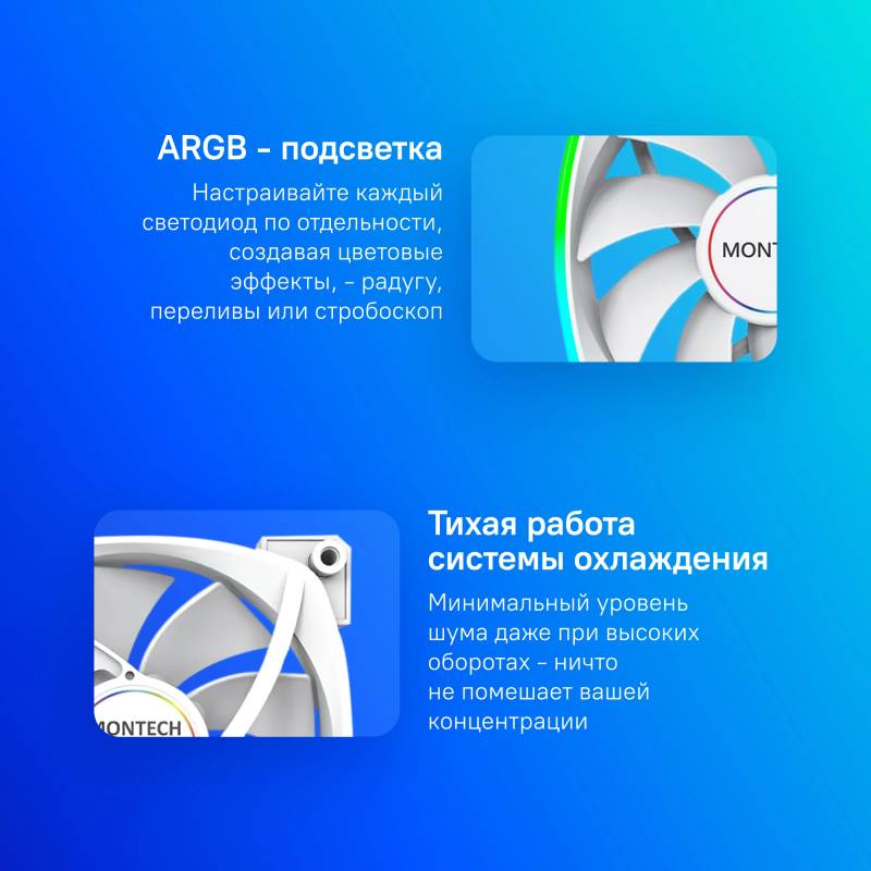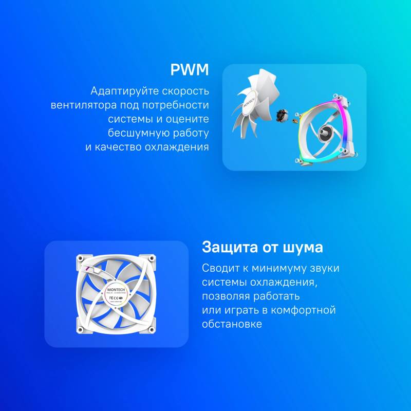 Вентилятор для корпуса Montech AX140 ARGB 140х140x25 белый 4-pin 27.9дБ (AX140 PWM WHITE) Ret