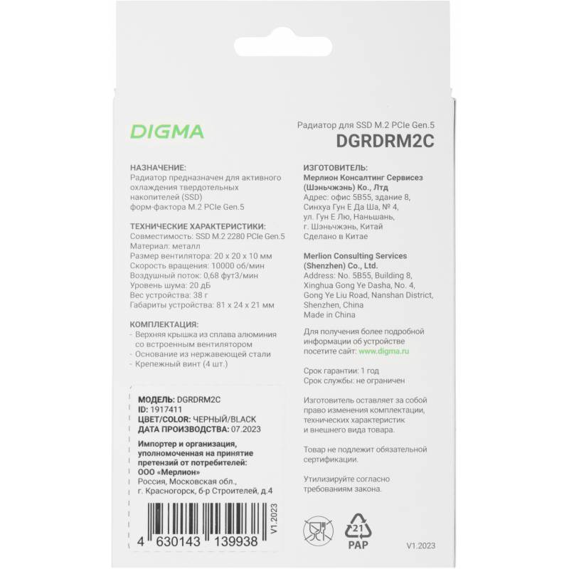 Радиатор для SSD Digma DGRDRM2C черный 20дБ металл Ret