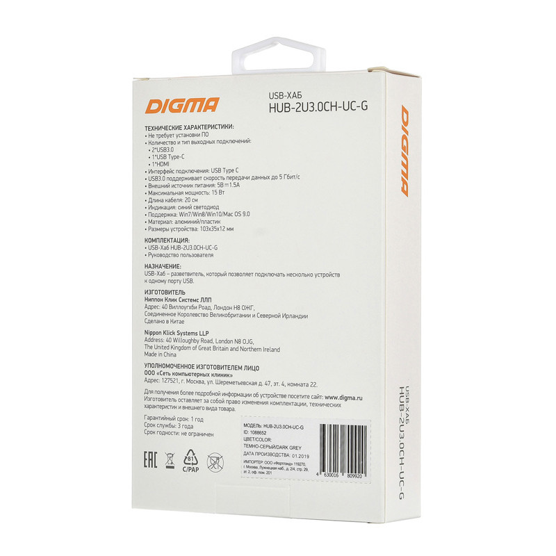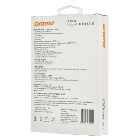 Стыковочная станция Digma HUB-2U3.0CH-UC-G (HUB-2U3.0СH-UC-G)