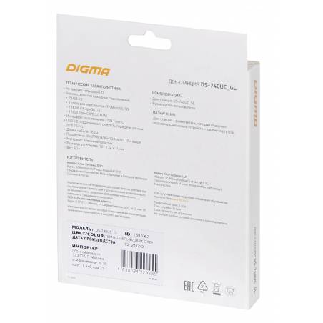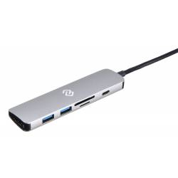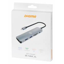 - Type-C док-станция DIGMA, 6 портов (HDMI (4K@60Hz), 2xUSB 3.0, PD 3.0 USB-C 60W, MicroSD, SD)