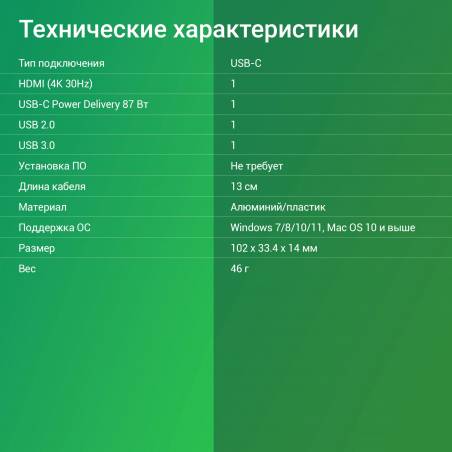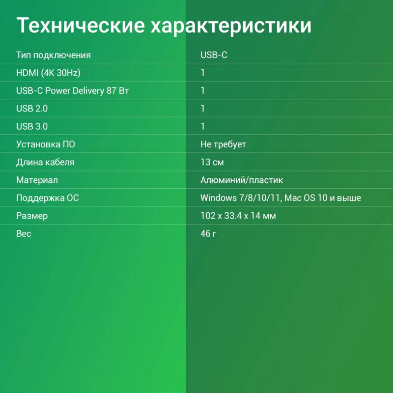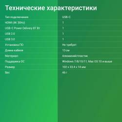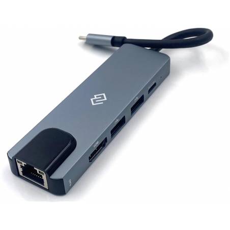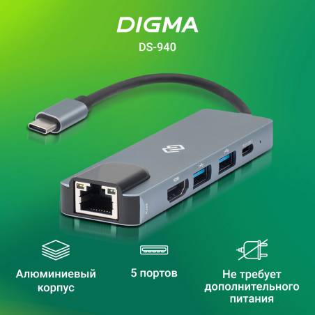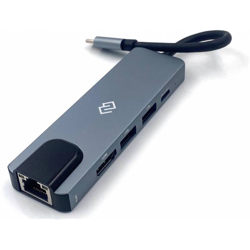 - Type-C док-станция DIGMA, 5 портов (HDMI (4K@30Hz, FULL HD@60Hz) , USB-C PD 87W, Lan 100mb, 1xUSB 3.0, 1xUSB 2.0