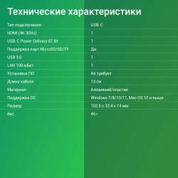 - Type-C док-станция DIGMA, 6 портов (HDMI (4K@30Hz, FULL HD@60Hz) , USB-C PD 87W, SD/MicroSD, Lan 100mb, 1xUSB 3.0