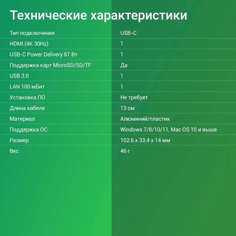 - Длина кабеля 13см. Не требует дополнительного питания