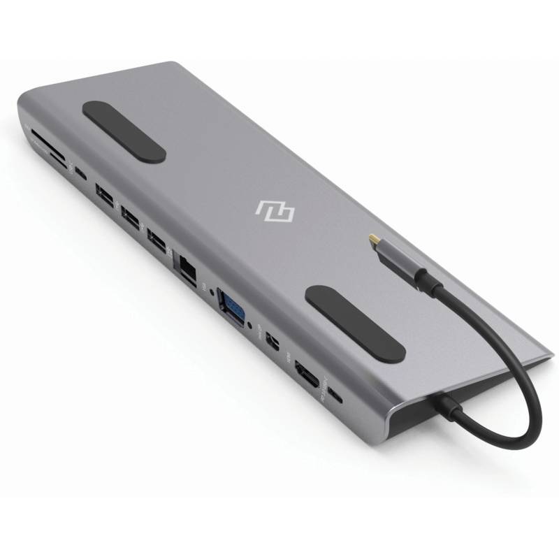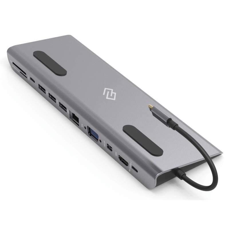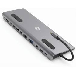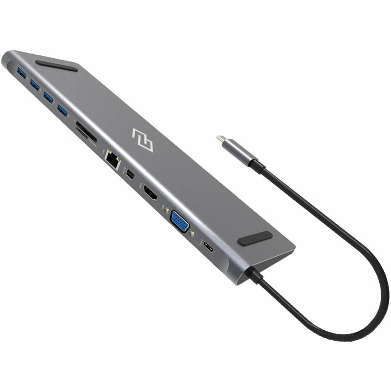 - Type-C док-станция DIGMA, 12 портов (HDMI (4K@30HZ, FULL HD@60Hz) , VGA, RJ45, Mini DisplayPort (4K@30HZ, FULL HD@60Hz), 3xUSB 3.0, Audio 3.5mm, 2xUSB-C (2.0 и PD 3.0 60W), MicroSD, SD)