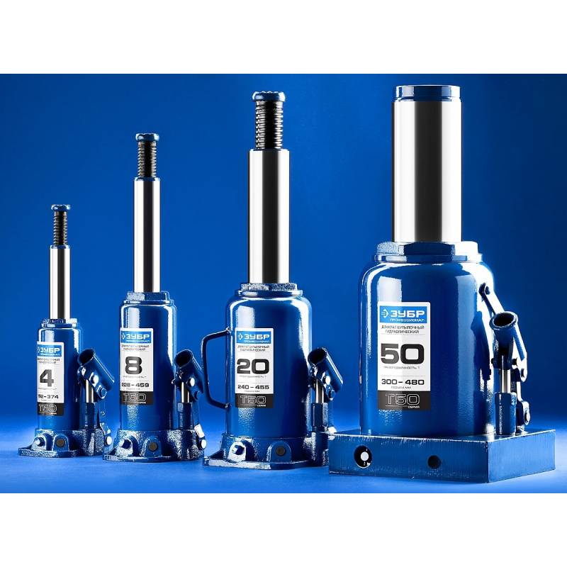 Домкрат Зубр Профессионал T50 бутылочный гидравлический синий (43060-20_Z01)