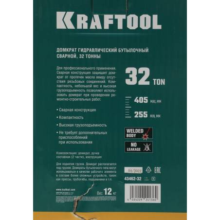 Домкрат Kraftool Kraft-Lift 43462-32_z01 бутылочный гидравлический зеленый/серый
