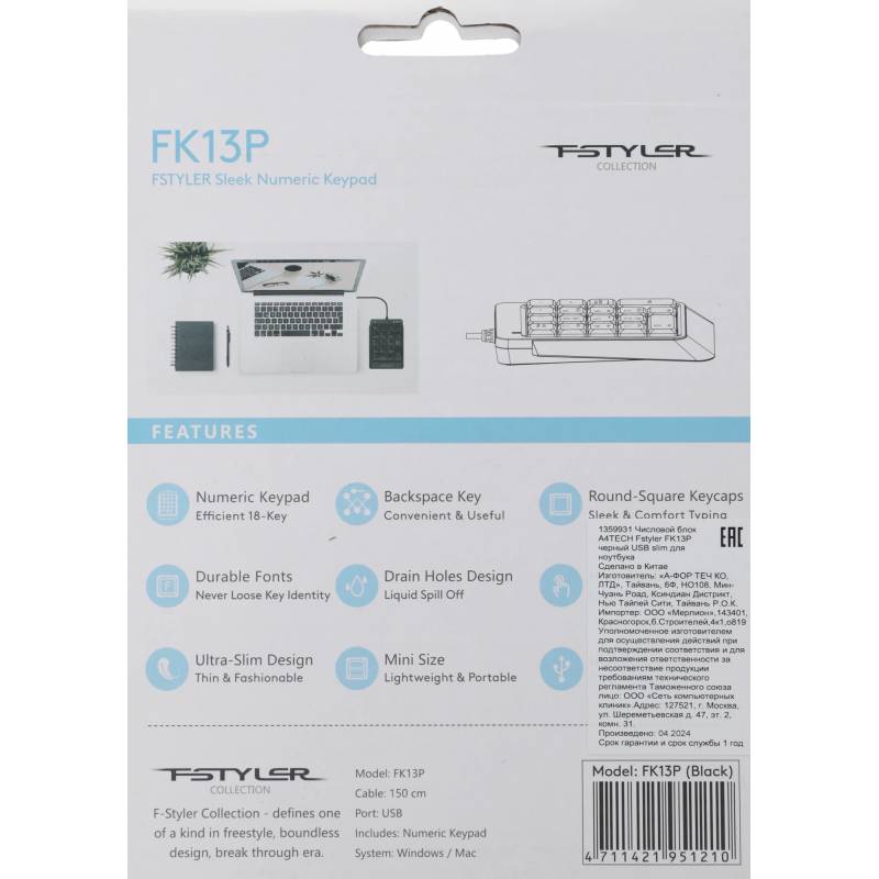 Числовой блок A4Tech Fstyler FK13P черный USB slim для ноутбука (FK13P BLACK)