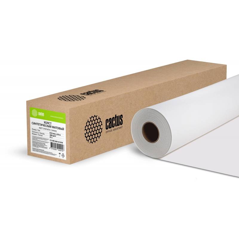 Холст Cactus CS-MC260-61030 610мм-30м/260г/м2/белый матовое синтетика для струйной печати втулка:50.8мм (2")
