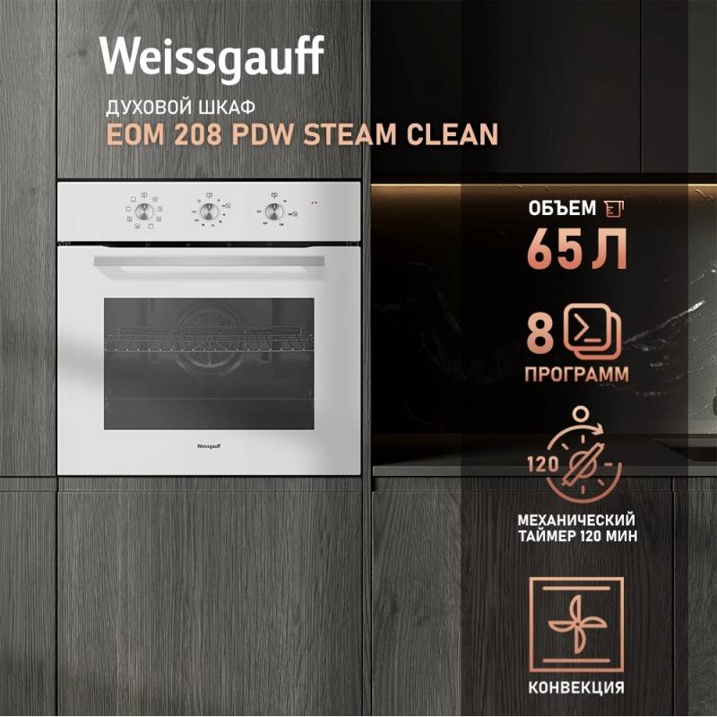 Духовой шкаф Электрический Weissgauff EOM 208 PDW Steam Clean белый
