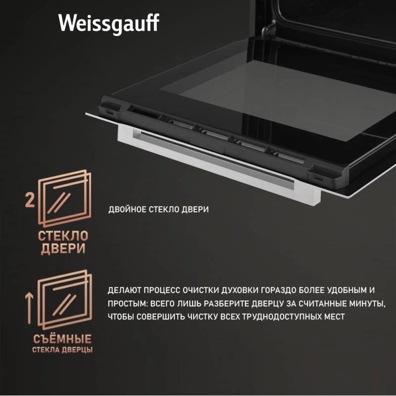 - Полностью стеклянная внутренняя поверхность дверцы духовки