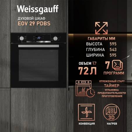 Духовой шкаф Электрический Weissgauff EOV 29 PDBS черный