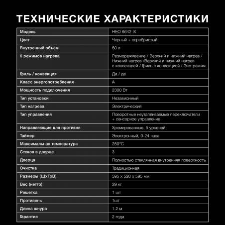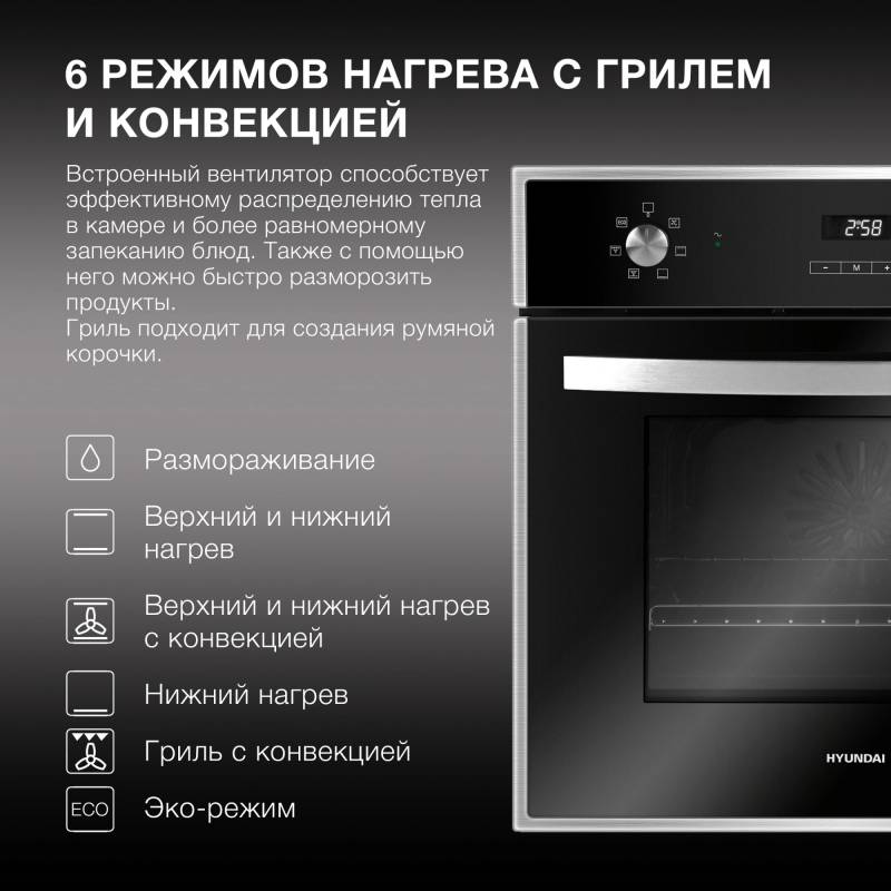 Духовой шкаф Электрический Hyundai HEO 6642 IX серебристый/черный