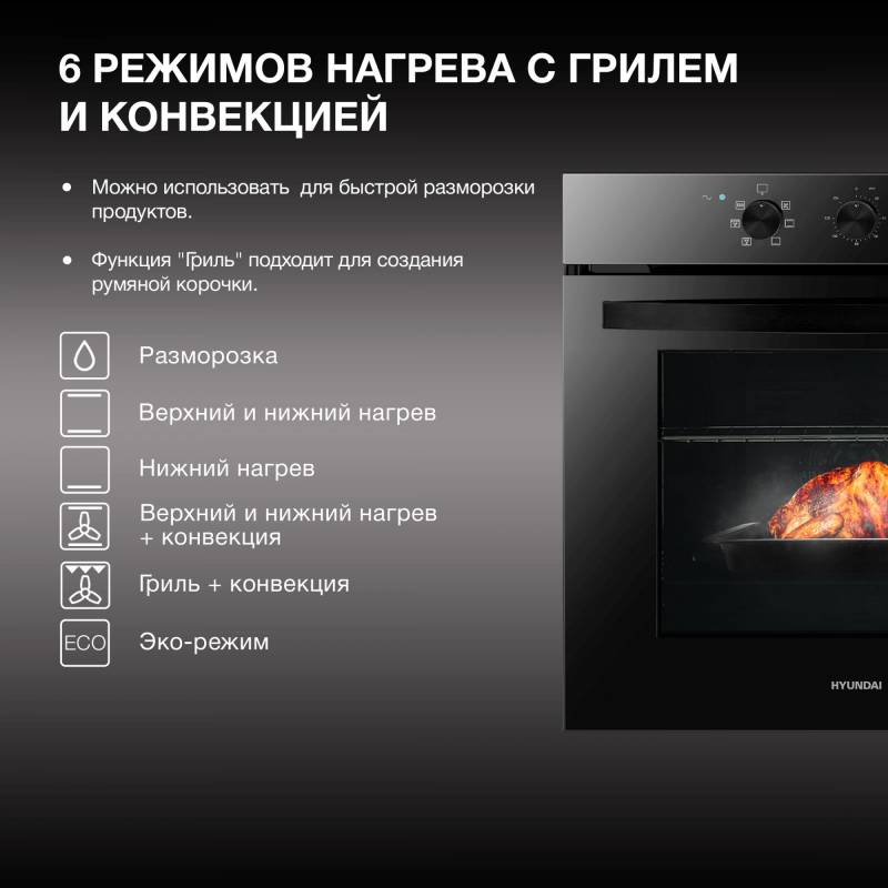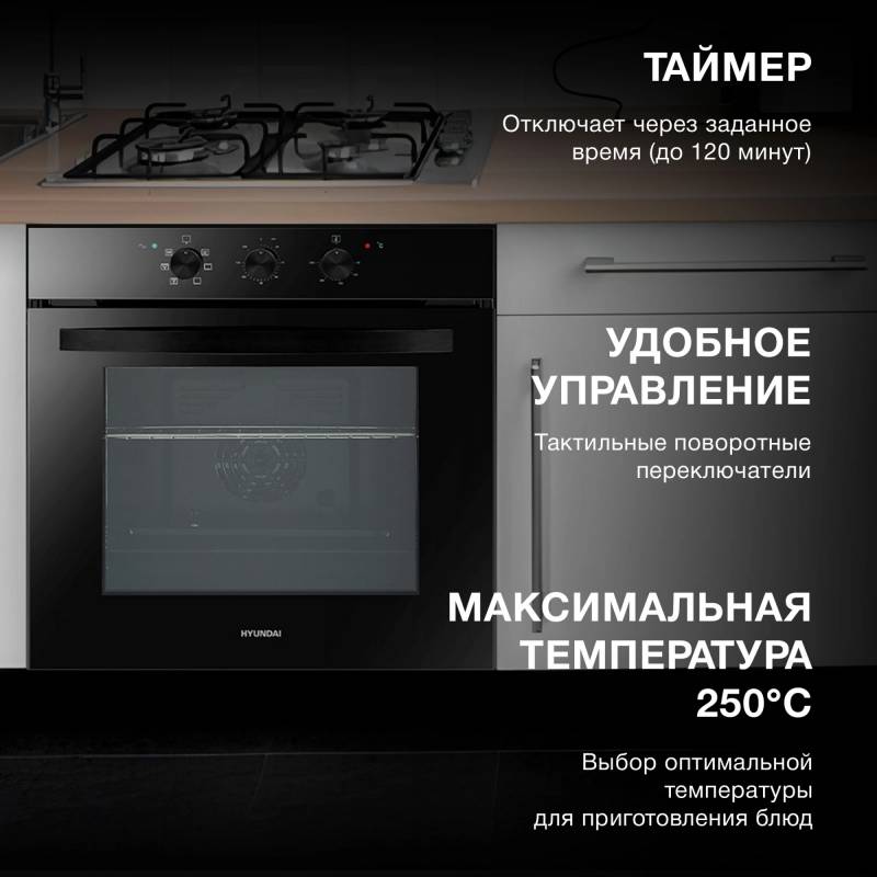 Духовой шкаф Электрический Hyundai HEO 6634 BG черное стекло