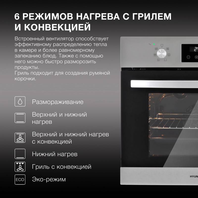 Духовой шкаф Электрический Hyundai HEO 6640 IX серебристый/черный