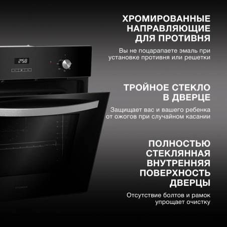 - Полностью стеклянная внутренняя поверхность дверцы духовки