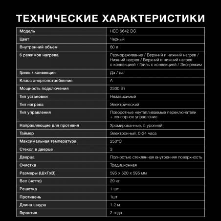 Духовой шкаф Электрический Hyundai HEO 6642 BG черный