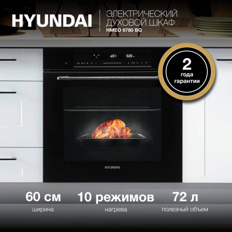Духовой шкаф Электрический Hyundai HMEO 6780 BG черное стекло/серебристый