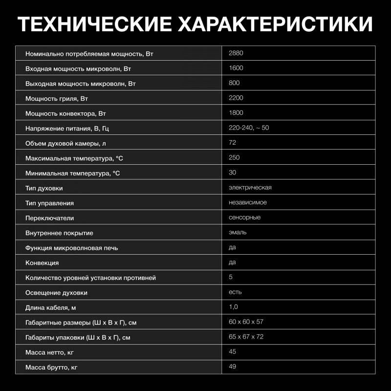 - Программа разморозки, Радиаторный гриль, Двойной гриль, Двойной гриль + вентилятор, Нижний нагрев/выпечка, Обычный + Вентилятор, Конвекция, Пицца, Быстрый предварительный нагрев, ЭКО, Ферментация, СВЧ, СВЧ + конвекция, СВЧ + двойной гриль+ вентилятор, СВЧ