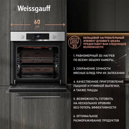 Духовой шкаф Электрический Weissgauff EOV 770 PDX нержавеющая сталь