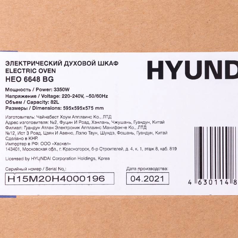 Духовой шкаф Электрический Hyundai HEO 6648 BG черный