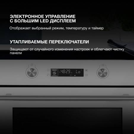 - Полностью стеклянная внутренняя поверхность дверцы духовки