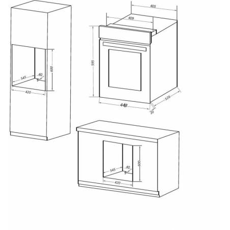 - Традиционный нагрев, Конвекционный нагрев, Нижний нагрев, Малый гриль, Большой гриль, Конвектор с нижним нагревом, Внутреннее освещение