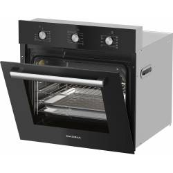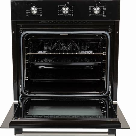 - Встраиваемый электрический шкаф со стеклянным фасадом черного цвета, 9 режимов работы, тангенциальное охлаждение, механический таймер, подсветка, конвектор, гриль, терморегулятор.