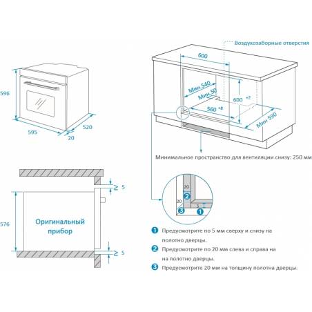 - верхний + нижний нагрев (традиционное приготовление), верхний нагрев, нижний нагрев, подсветка