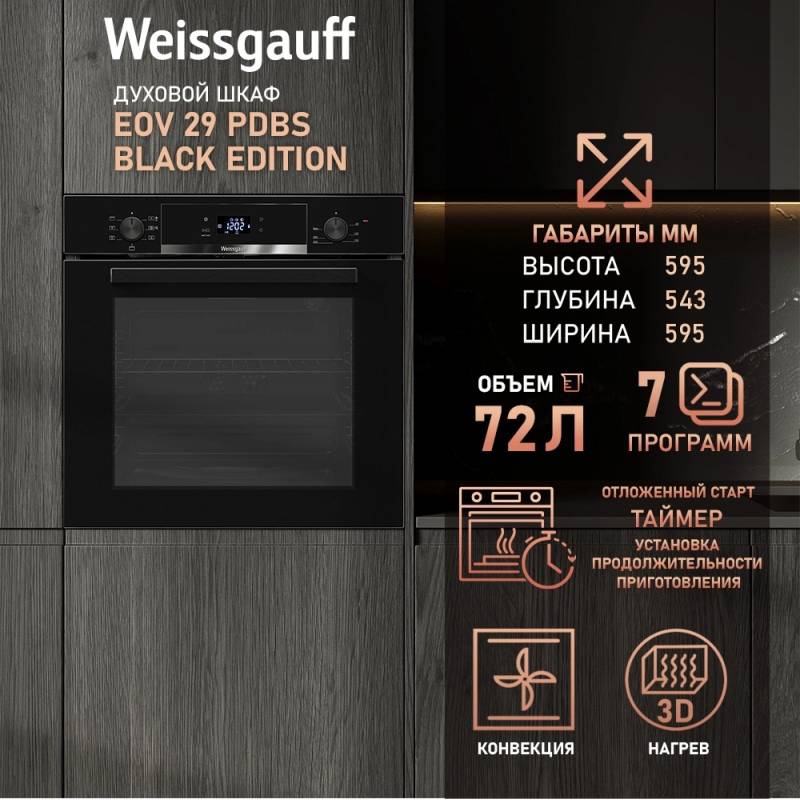 Духовой шкаф Электрический Weissgauff EOV 29 PDB Black Edition черный