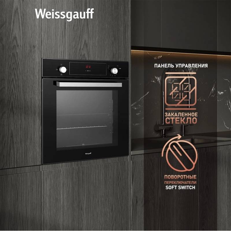 Духовой шкаф Газовый Weissgauff WGO 706 D черное стекло