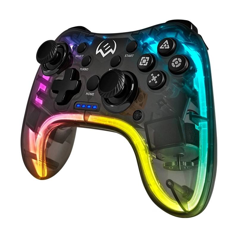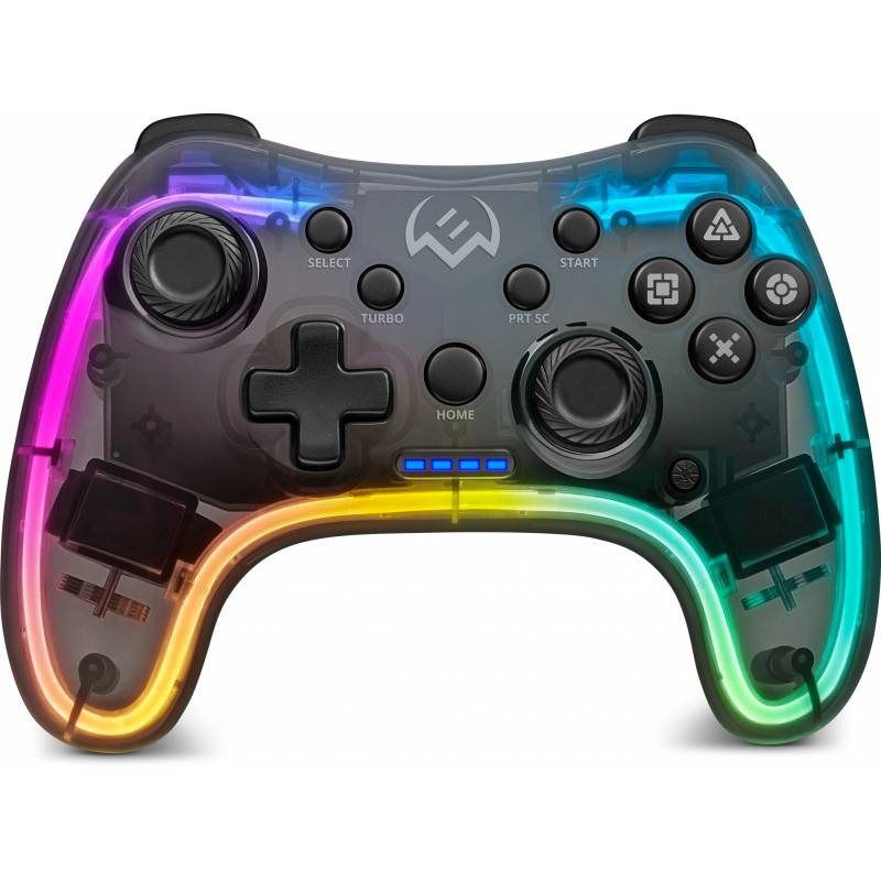 - Динамическая RGB-подсветка,Прозрачный корпус,Программируемые кнопки,Настраиваемый уровень виброотдачи,Встроенный аккумулятор 800 мАч,Поддержка режимов X-Input и Direct Input,Держатель для смартфона в комплекте
