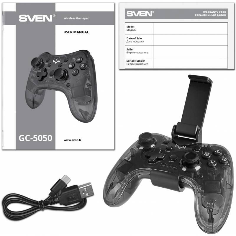 Геймпад Sven GC-5050 черный Bluetooth Беспроводной виброотдача обратная связь (в компл.:держатель для смартфона/кабель USB) (SV-