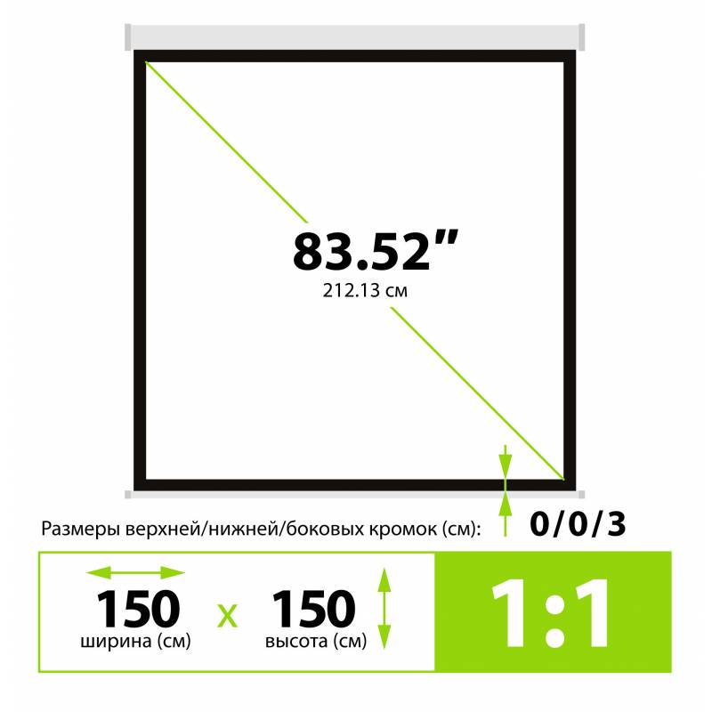 Экран Cactus 150x150см Wallscreen CS-PSW-150x150 1:1 настенно-потолочный рулонный белый