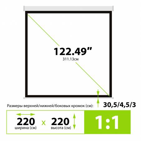 Экран Cactus 220x220см MotoExpert CS-PSME-220x220-WT 1:1 настенно-потолочный рулонный белый (моторизованный привод)