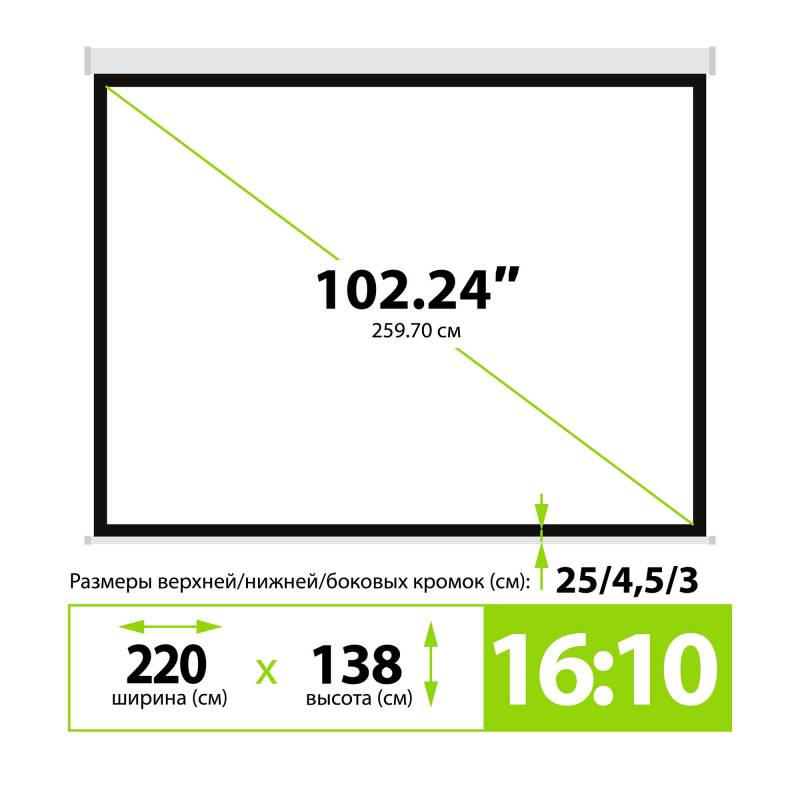 Экран Cactus 138x220см MotoExpert CS-PSME-220x138-WT 16:10 настенно-потолочный рулонный белый (моторизованный привод)