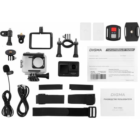 - Основное креплениеКрепление на руль велосипедаКрепление для плоской поверхностиАдаптер-кронштейн 1Адаптер-кронштейн 2РамкаПовязка-бандажПульт ДУВнешний микрофон