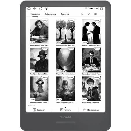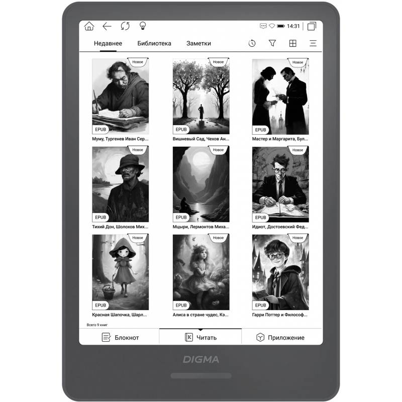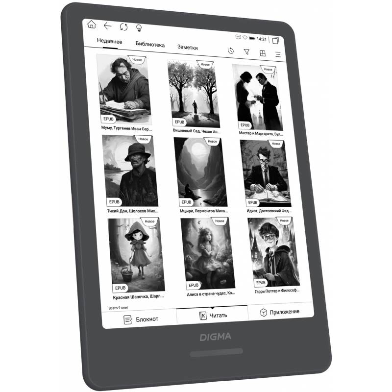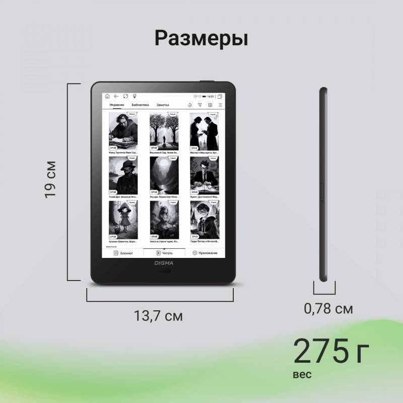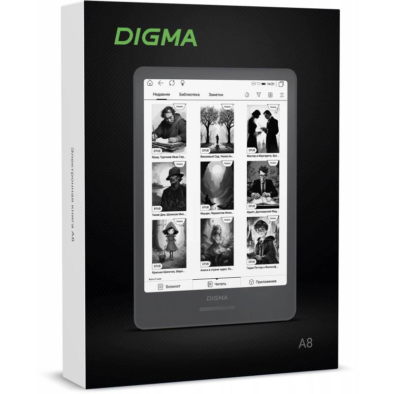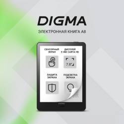 Электронная книга Digma A8 7.8" E-ink HD Carta 1873x1404 Touch Screen 1.8Ghz 3072/32Gb/SD/microSDHC/подсветка дисплея темно-серы