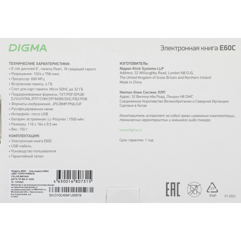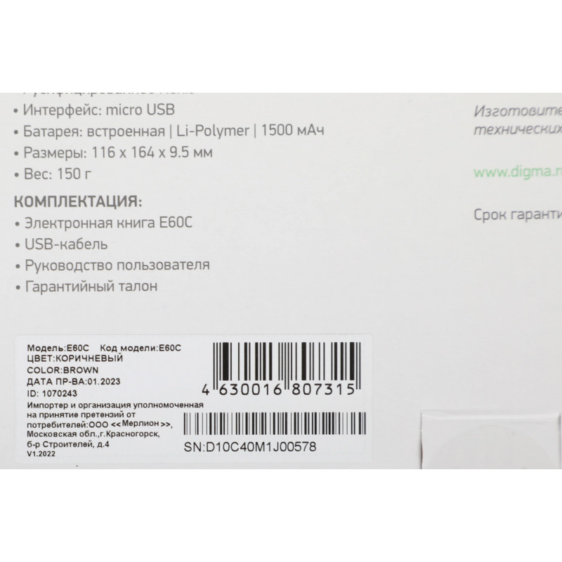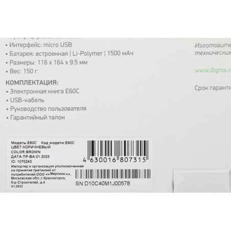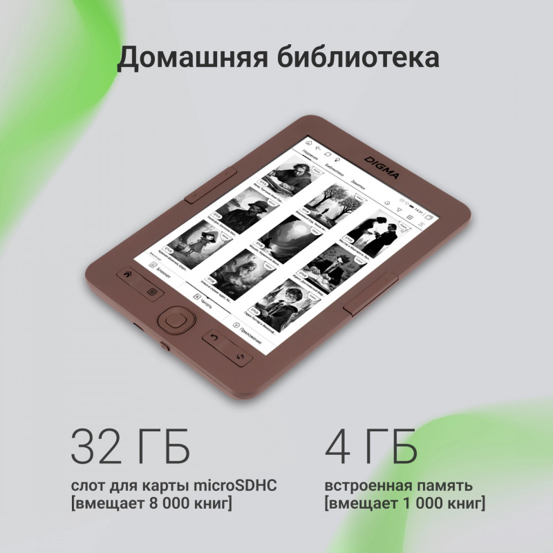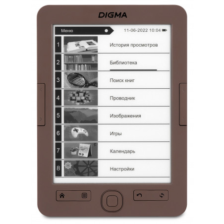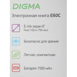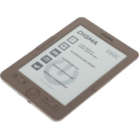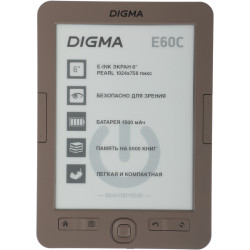 Электронная книга Digma E60C 6" E-ink HD Pearl 1024x758 600MHz/4Gb/microSDHC коричневый