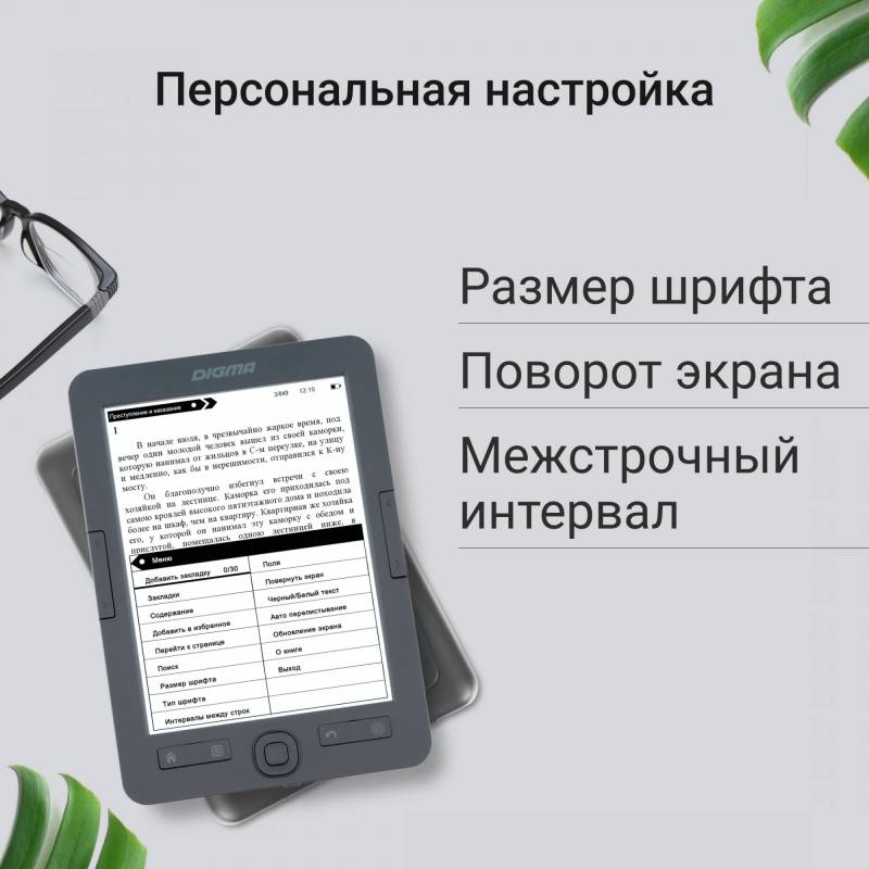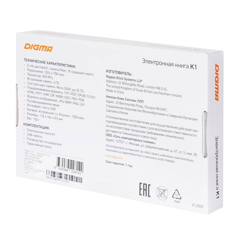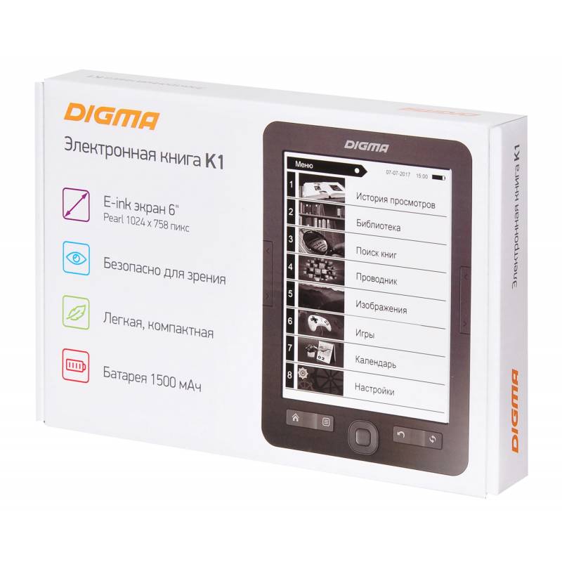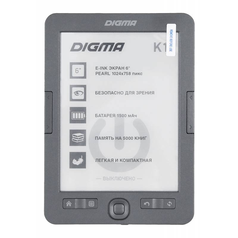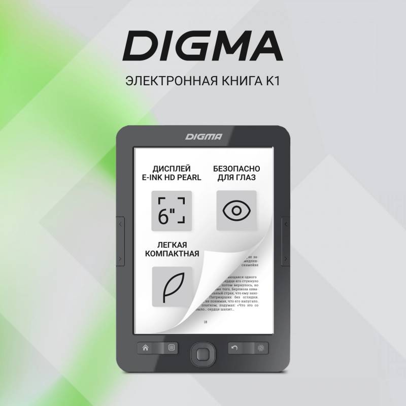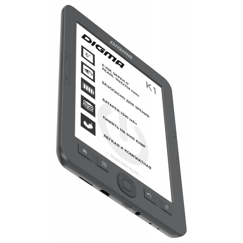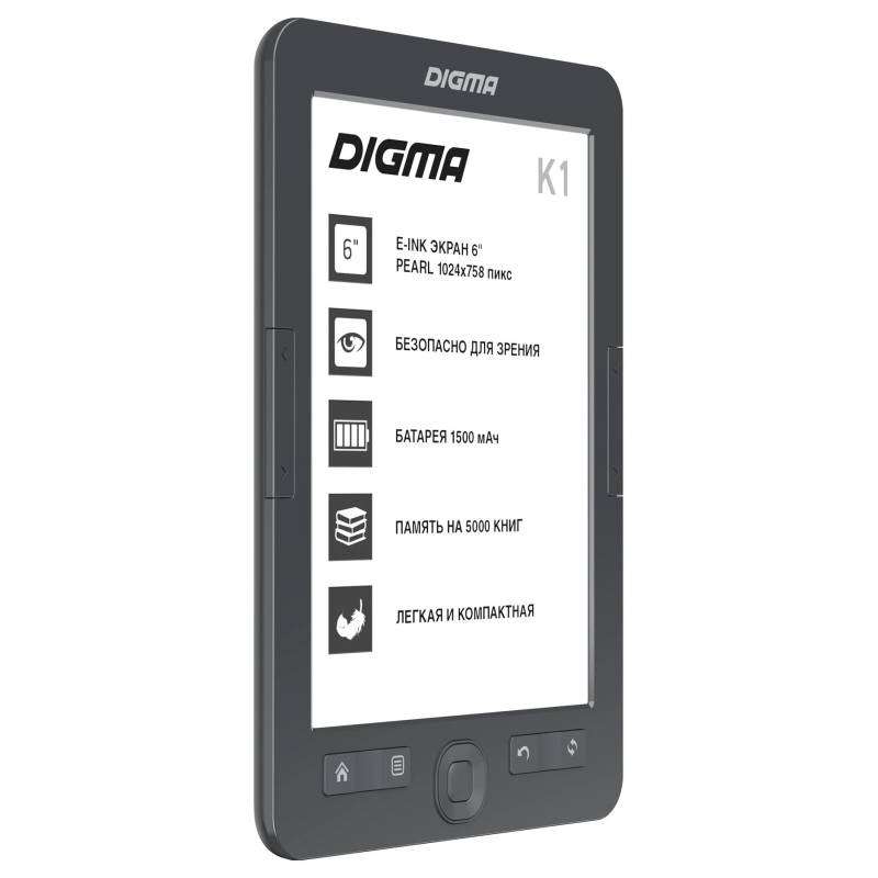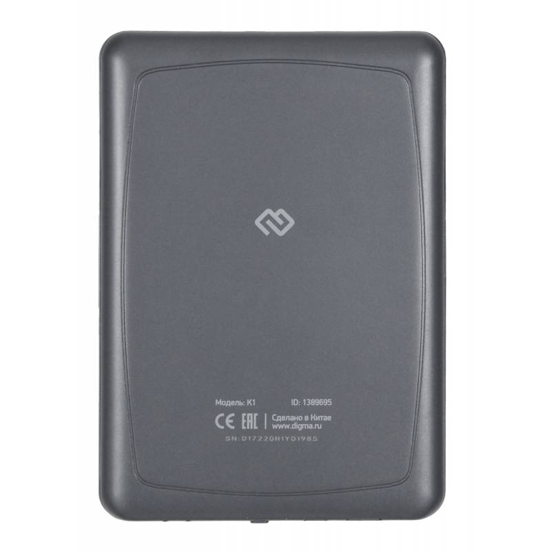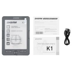 Электронная книга Digma K1 6" E-ink HD Pearl 758x1024 600MHz 128Mb/4Gb/SD/microSDHC темно-серый