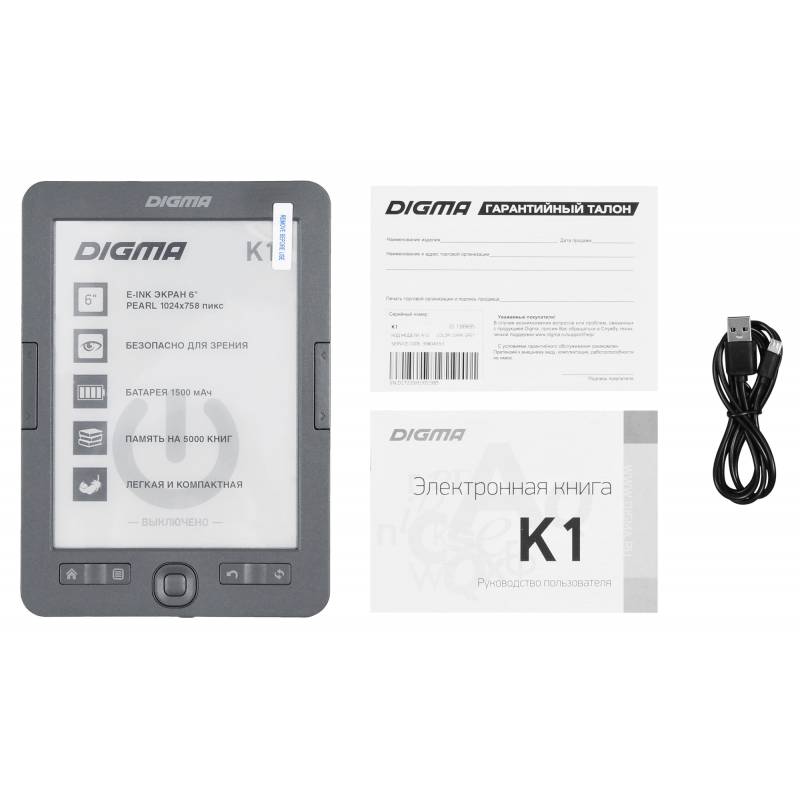 - Электронная книга K1USB-кабельРуководство пользователяГарантийный талон