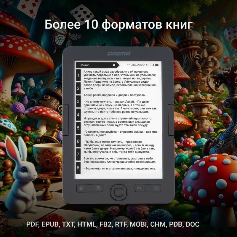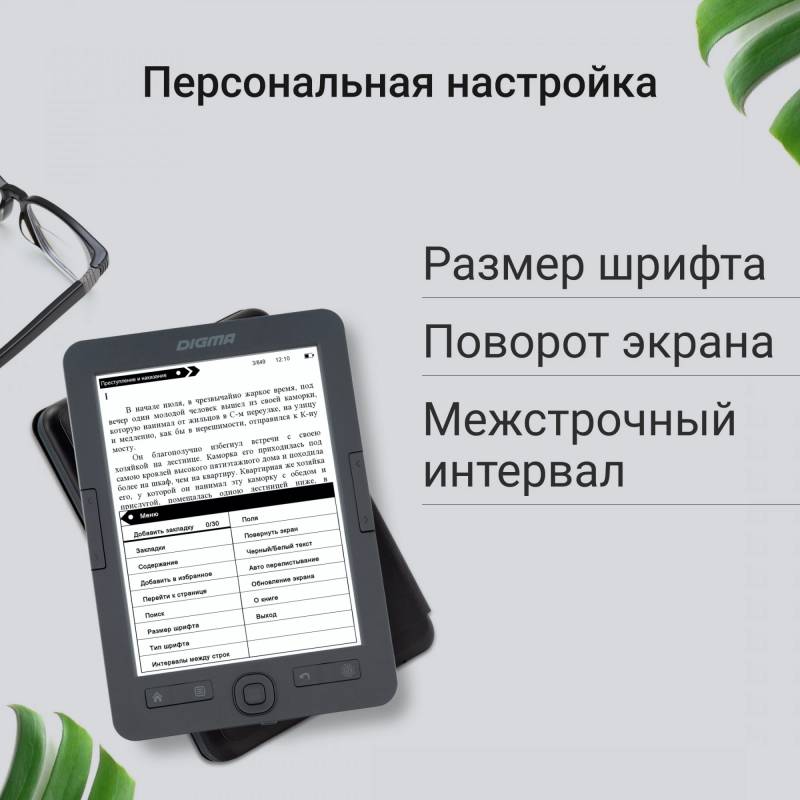 Электронная книга Digma X1 6" E-ink HD Pearl 1024x758 Touch Screen 600MHz/4Gb/microSDHC/подсветка дисплея темно-серый