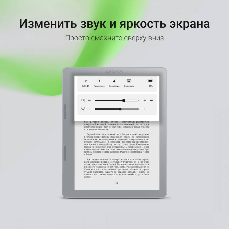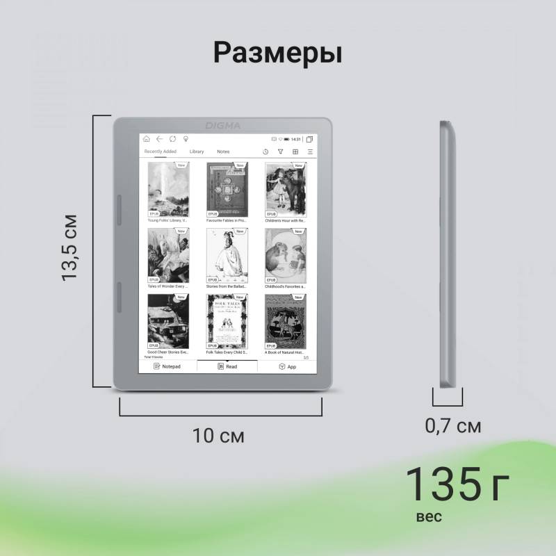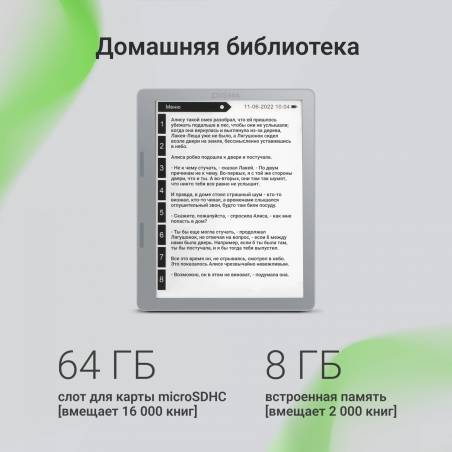 Электронная книга Digma E2 5.83" E-Ink 680x920 Touch Screen 1.2Ghz 1Gb/8Gb/SD/microSDHC/подсветка дисплея светло-серый